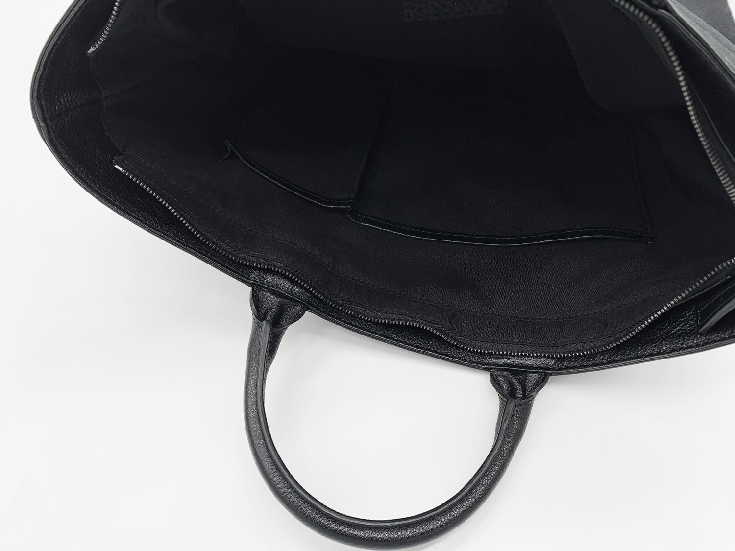ハンドル 、開口部、サイド、底部分に牛革を使用することにより、しっかりと形を保ちながらも、本体は織物生地なので750gと軽くデザインと実用性を兼ね備えた鞄です。